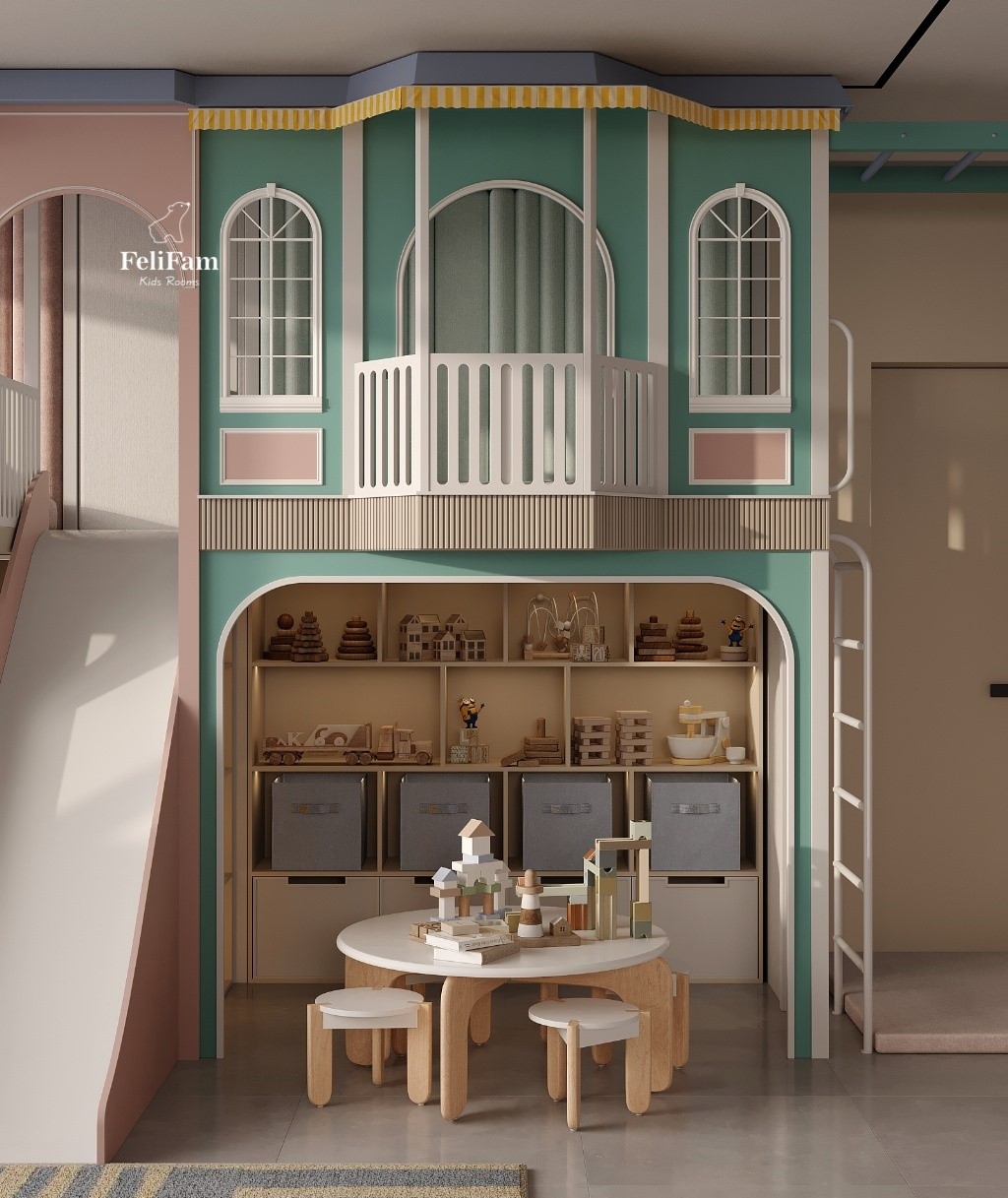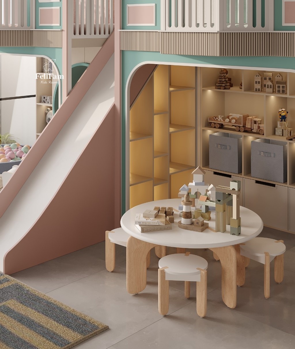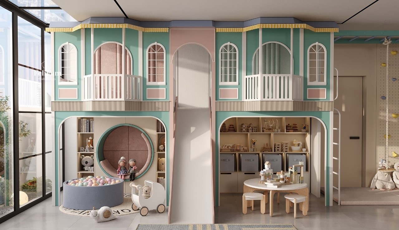 Qui tutto è pensato affinché i bambini provino gioia, entusiasmo e il desiderio di tornare ancora e ancora. La grande struttura a due piani con scivolo crea un senso di avventura e aggiunge dinamismo, la zona interattiva offre opportunità di crescita e gioco, mentre l’area sportiva garantisce un divertimento attivo.