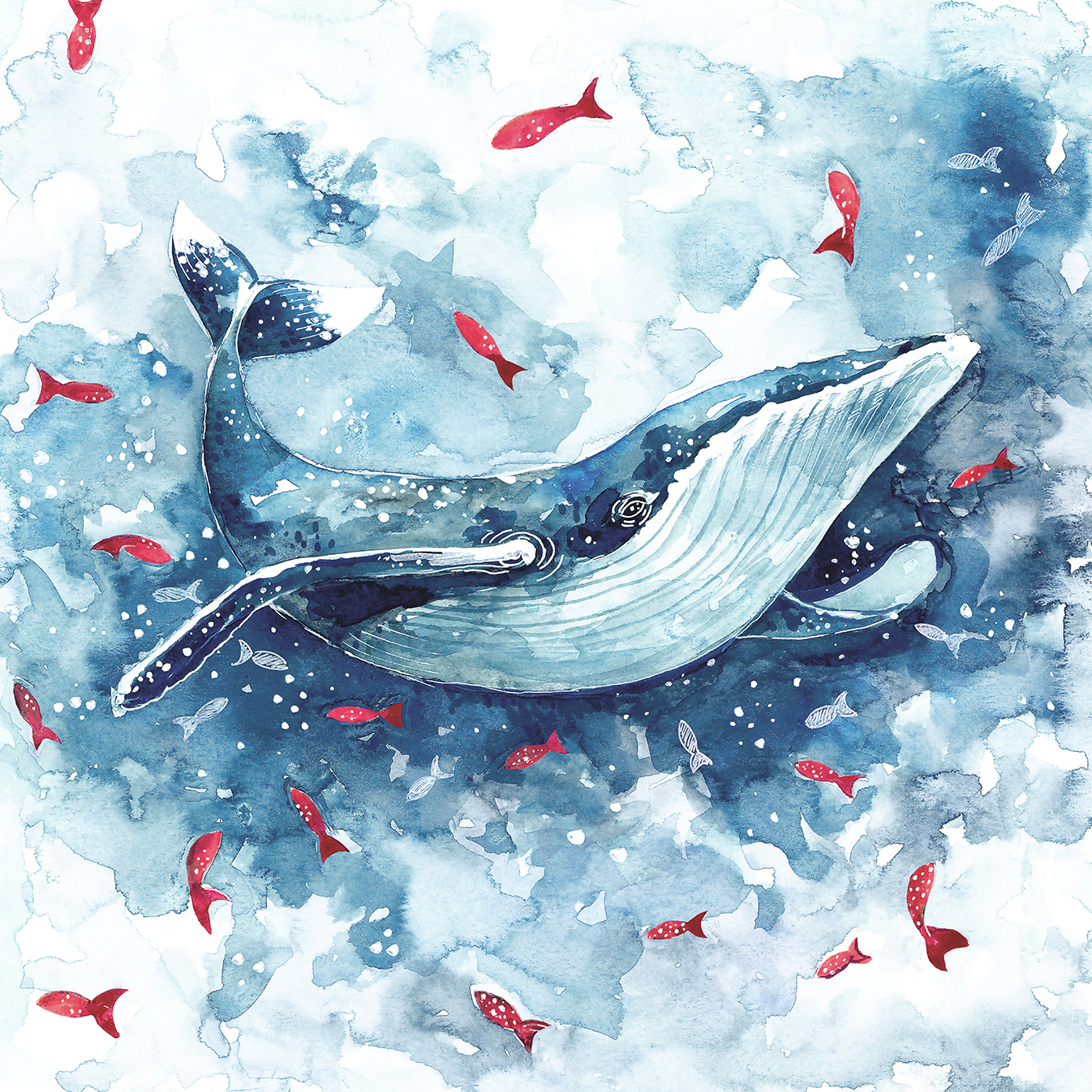 Home > Negozio > Carta da parati > Carta da parati bambini Una balena con pesci rossi