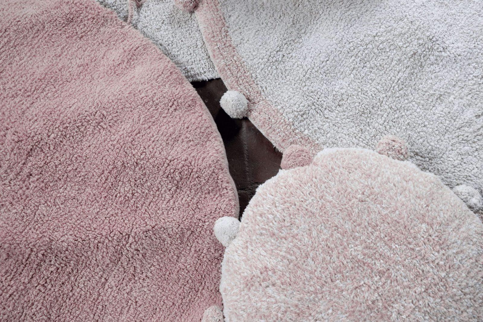 Riempite la vostra stanza con morbidi pompon di cotone! La collezione di tappeti Bubbly è disponibile in 3 colori (azzurro, grigio chiaro e rosa chiaro) ed è realizzata in 100% cotone, lavabile in lavatrice (lavatrice normale da 5 kg). Le loro dimensioni ridotte sono perfette per le stanze dei bambini, delle bambine e dei ragazzi, grazie alla delicata ed elegante combinazione di colori pastello e di bellissimi pompon nella stessa combinazione di colori. Il tappeto fatto a mano è sicuro, vengono utilizzate tinture naturali ed è realizzato solo in cotone.